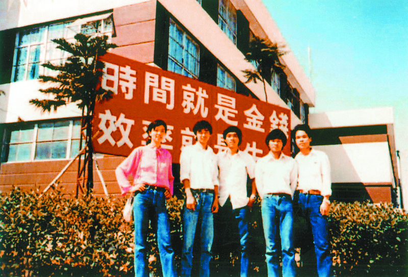 20世紀80年代初,蛇口青年工在標語牌下留影。
