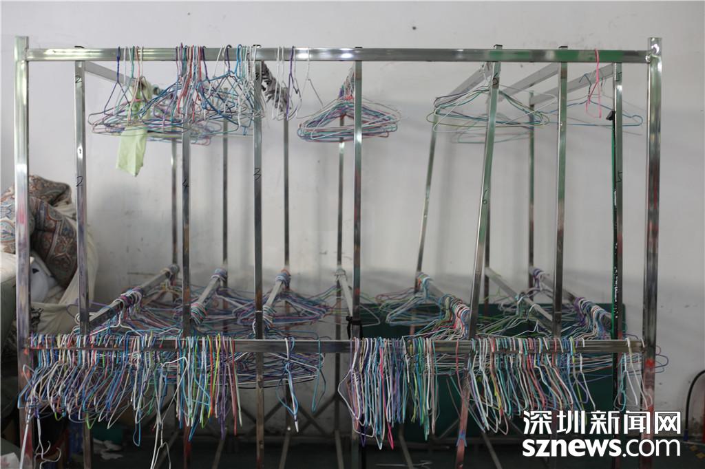 回收到分揀庫(kù),無(wú)用的衣架被掛了起來(lái)