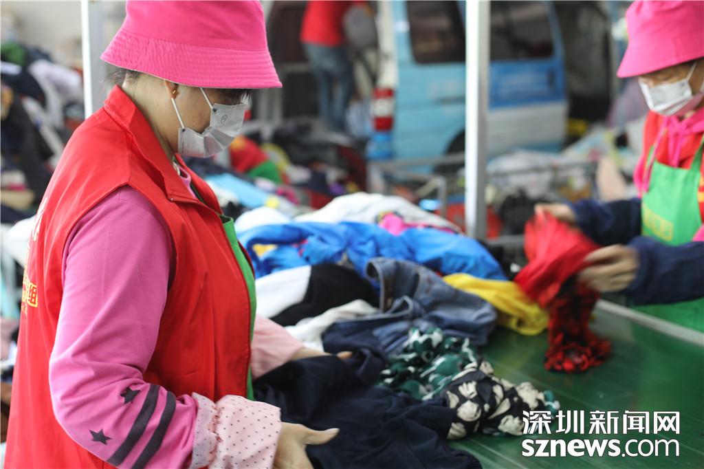工作人員對(duì)分揀出來(lái)的衣物進(jìn)行分類