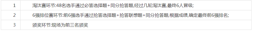 你熟悉改革開放的相關(guān)知識嗎? 你了解深圳這個改革開放窗口城市嗎? 你關(guān)注深圳特區(qū)的發(fā)展歷程嗎? 你知道深圳各大地標(biāo)嗎? …… 只要你有興趣 歡迎報名參加我們將選取 活動現(xiàn)場還有驚喜大禮等你哦大家千萬別錯過喲! 第一名將獲得華為P20手機一部 圖片來源:華為官方旗艦店 前6強選手將獲得豐厚獎品哦! 競賽流程 競賽規(guī)則 淘汰賽獎勵和規(guī)則 【獎勵】本次知識競賽共有七輪淘汰賽,將從48名參賽選手中,選出6位選手晉級排位賽。48名參選選手均將獲得手繪深圳景色明信片,6強選手都將獲得獎品。 【規(guī)則】淘汰賽中,所有選手都兩兩PK答題,號碼牌數(shù)字由選手自己盲選,號碼牌接近的兩人自動互為PK對手(1號牌 PK2號牌、3號牌 PK4號牌……依次對應(yīng)PK)。題目皆為選擇題,答案有A、B、C三個,選手要從中選出正確答案。誰答對的多誰贏,同分再搶答一題定勝負(fù),輸?shù)囊环阶詣犹蕴?/p> 排位賽規(guī)則 【總規(guī)則】所有選手都將分到一個搶答器,初始得分都為100分,比賽過程中選手們進行搶答,答對得20分,答錯扣10分,提前搶答扣10分,每題答題時間10秒,答題超時扣10分。 排位賽共有20道搶答題,其中10題為選擇題,10題為聯(lián)想題: 【選擇題規(guī)則】選擇題答案有A、B、C三個,選手要從中選出正確答案,參賽選手必須在主持人喊出“開始”后,才可搶答,提前搶答扣分; 【聯(lián)想題規(guī)則】聯(lián)想題的每一道題的答案都是一個專有名詞,每道題目主持人會用較慢速描述該名詞開始,選手從主持人的描述中獲取線索,猜出答案,選手可隨時搶答。答對一題得20分,答錯扣10分。 了解清楚比賽流程和規(guī)則之后, 是不是想趕緊報名呢? 那么,具體如何參與呢? 報名方式 1、掃描下方二維碼進入原文留言,回復(fù)“報名+姓名+電話”; 2、回復(fù)截止時間至2019年1月3日。如若報名成功,將會收到我們的回復(fù)通知; 3、本次活動免費報名,活動解釋權(quán)歸深圳發(fā)布廳所有。 期待你的參與! 快快報名吧! 內(nèi)容來源:深圳發(fā)布 如需轉(zhuǎn)載,請注明以上內(nèi)容