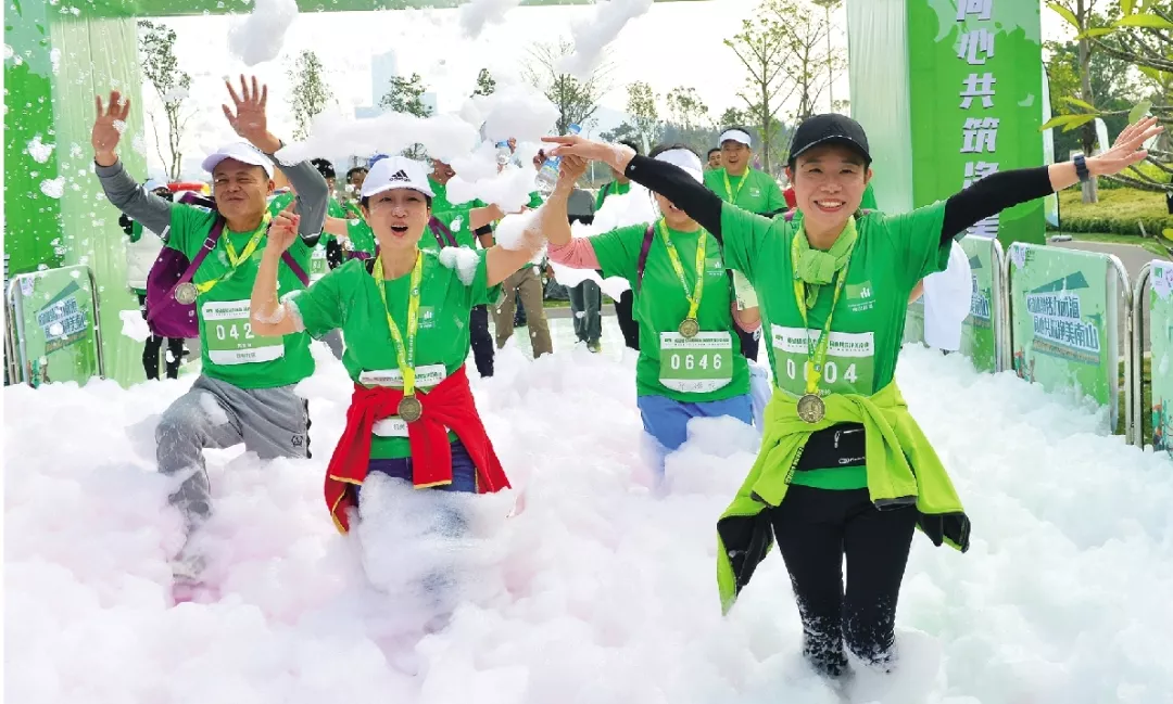 來自荔灣社區(qū)的劉先生,是一位跑步愛好者,參加了多場半馬和全馬比賽,這是他第一次參加“生態(tài)歡樂跑”,對此他贊不絕口:“跑道平坦舒適,兩側(cè)風景絕美,拉拉隊、補給站非常給力;還有生態(tài)和環(huán)保的知識闖關答題,讓我知道原來街道在生態(tài)和黨建方面做了這么多卓有成效的工作;集體闖關跳繩活動,更是歷練了團隊的力量。這些安排讓我享受到了全民健身的樂趣!”