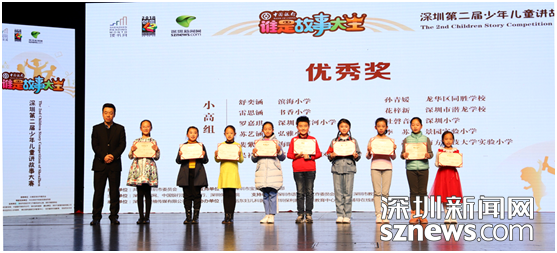 活動(dòng)期間,大賽主辦方還為參加此次活動(dòng)的學(xué)校、老師和小選手們頒發(fā)了最佳組織獎(jiǎng)、優(yōu)秀指導(dǎo)老師、優(yōu)秀獎(jiǎng)等獎(jiǎng)項(xiàng),從校園賽區(qū)、寶安分賽區(qū)、羅湖分賽區(qū)、中行專場(chǎng)、深圳新聞網(wǎng)線上海選晉級(jí)到深圳市復(fù)賽的每一位選手都獲得了參賽證明。一等獎(jiǎng)獲得者彭妙琪在采訪中表示,“很榮幸獲得‘故事大王’稱號(hào),這個(gè)比賽不僅讓自己聽(tīng)到了更多的故事,還能增長(zhǎng)見(jiàn)識(shí),讓我們知道自己的不足,相信明年會(huì)有更多的選手加入這個(gè)舞臺(tái)?!?/p>