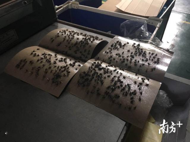 除臭氣難聞外,筆者看到靠近垃圾站一邊的廠房玻璃上爬著好幾只蒼蠅,同時,工廠員工還展示了兩張粘蠅紙。
