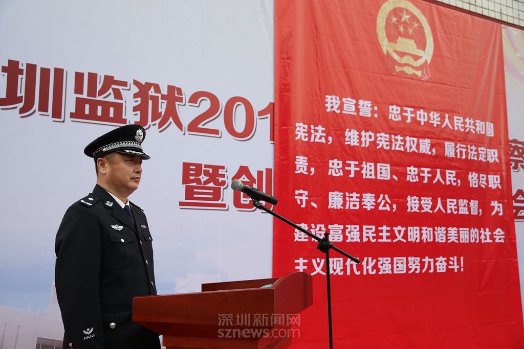 “我宣誓,忠于中華人民共和國(guó)憲法,維護(hù)憲法權(quán)威,履行法定職責(zé),忠于祖國(guó),忠于人民,恪盡職守,廉潔奉公,接受人民監(jiān)督,為建設(shè)富強(qiáng)民主文明和諧美麗的社會(huì)主義現(xiàn)代化強(qiáng)國(guó)奮斗!”鏗鏘誓言,猶在耳畔?;顒?dòng)中,深圳監(jiān)獄監(jiān)獄長(zhǎng)蔡曙光,帶領(lǐng)70名新入職警察面對(duì)國(guó)徽、手撫憲法,許下了他們忠于祖國(guó)、忠于人民的錚錚誓言,這也是深圳監(jiān)獄對(duì)新入職警察開(kāi)展集中的入職憲法宣誓。