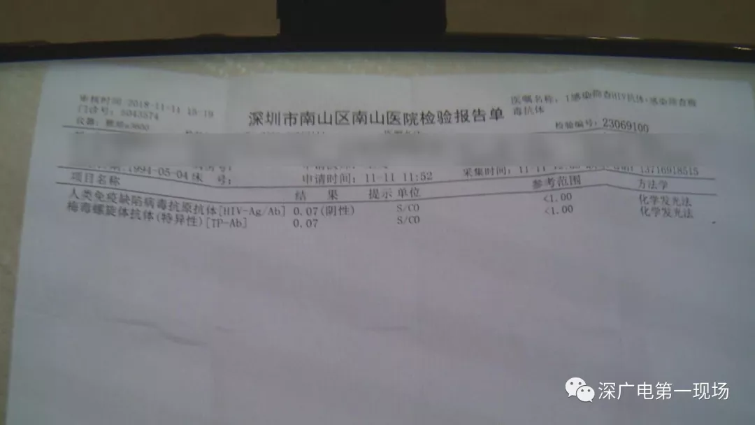 隨后,記者撥打吳某的電話,對報(bào)料人所說的情況進(jìn)行核實(shí)。電話中吳某告訴記者說他的病已經(jīng)治好了,并且給記者發(fā)來一張2018年11月11日,南山醫(yī)院的檢驗(yàn)報(bào)告單。