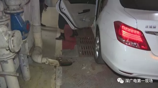 付女士表示,將女兒拉起后,她才發(fā)現(xiàn)自己??康倪@個車位,左側(cè)正好有一條排污渠。而巧合的是,在其后排左側(cè)的車門下方,有一個直徑約30厘米的坑!