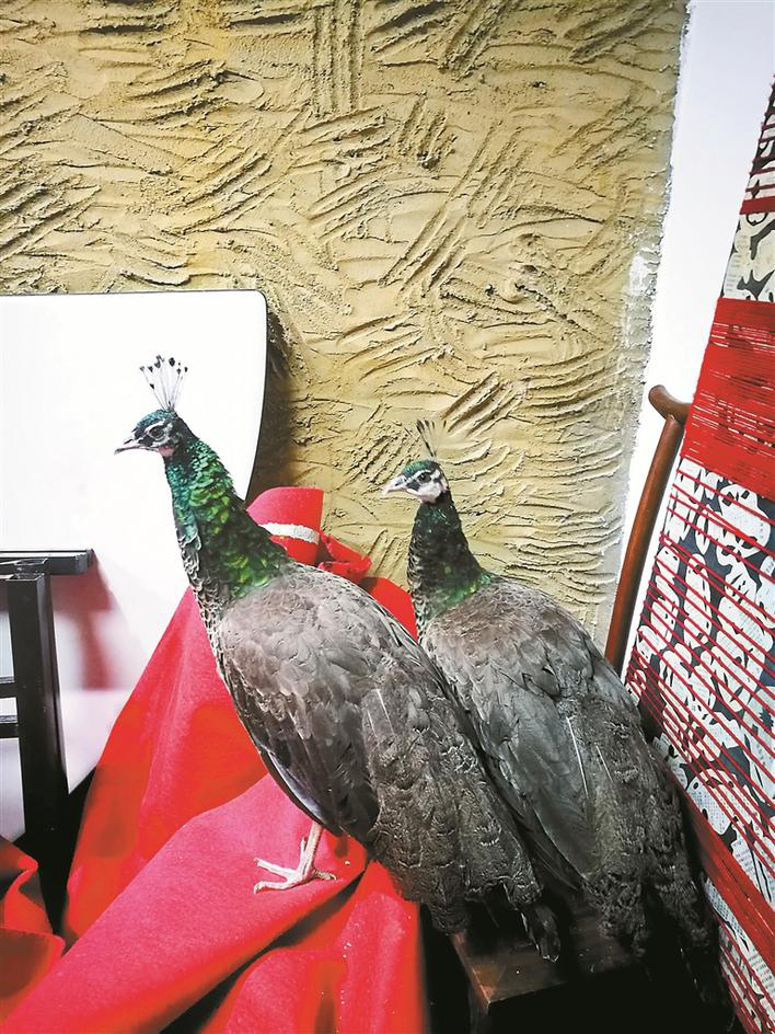 1月16日,市民蔣先生的公司飛來了兩只雌性藍(lán)孔雀