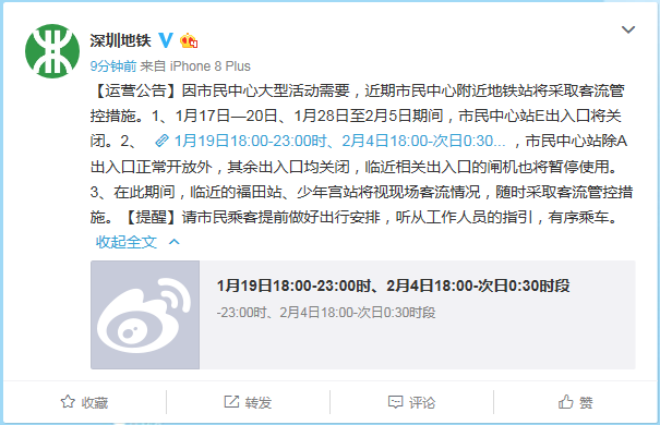 近日,深圳地鐵發(fā)布公告:因市民中心大型活動(dòng)需要,市民中心附近地鐵站將采取客流管控措施