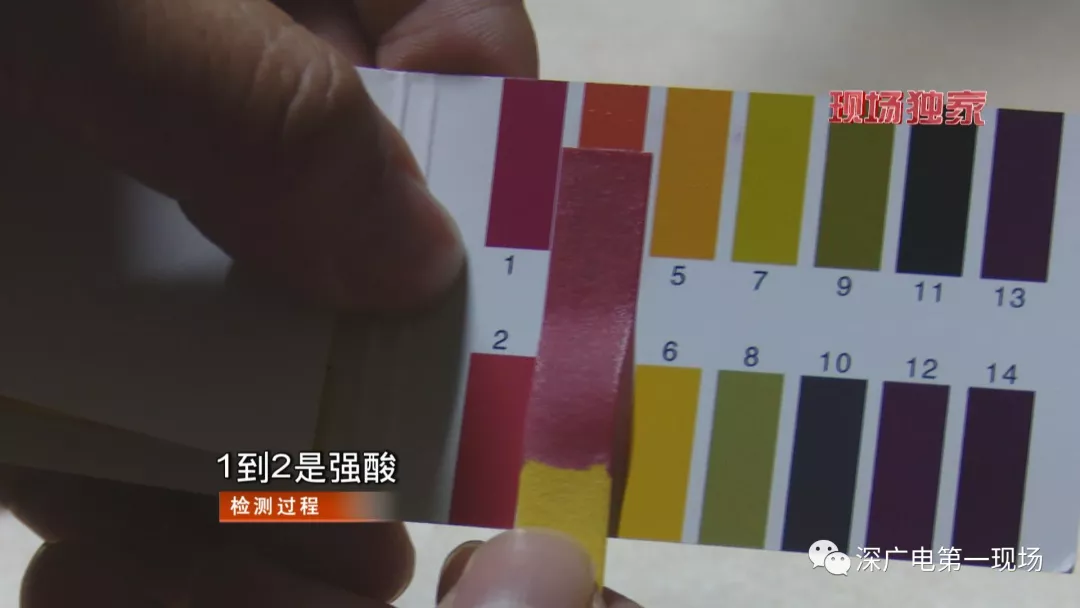 記者在地面上提取了一些廢棄液體,經(jīng)過PH試紙檢測,酸性數(shù)值在1到2之間。也就是說,這些液體呈強(qiáng)酸性。
