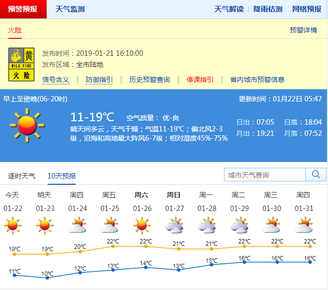 深圳市氣象局預(yù)計(jì),今天晴天間多云,天氣干燥;11-19℃;北風(fēng)3級(jí),沿海和高地最大陣風(fēng)6-7級(jí);濕度45%-75%。預(yù)計(jì)23日晴朗干燥;24-26日晴天干燥,氣溫有所回升;27日受偏南氣流影響,多云為主。