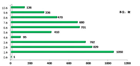 ▲行業(yè)教練車車齡統(tǒng)計圖(注:根據(jù)《機(jī)動車強(qiáng)制報廢標(biāo)準(zhǔn)規(guī)定》第五條規(guī)定:小型教練載客汽車使用10年)