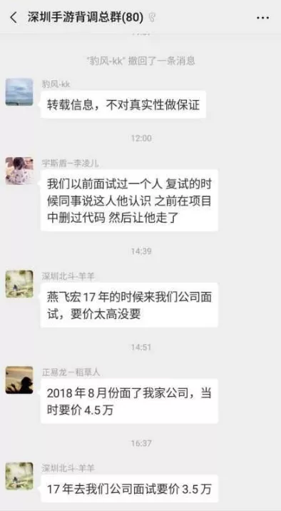在公告發(fā)出當(dāng)天,燕飛宏的名字迅速在深圳手游圈流傳開來。有從業(yè)者表示,“我在的幾個游戲行業(yè)招聘群都傳遍了”。在同行交流群里,還有從業(yè)者曝出他過往的“事跡”。