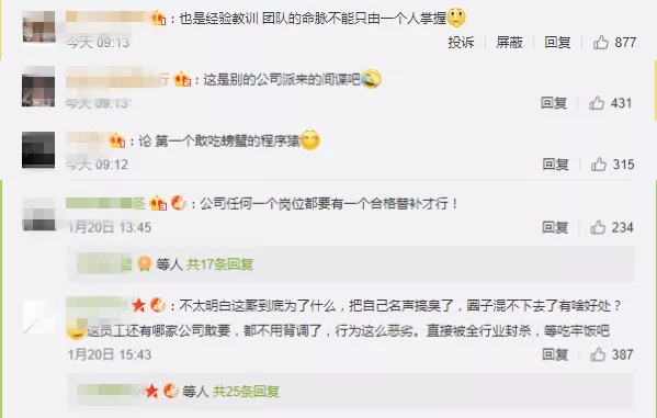 對此,網(wǎng)友紛紛直呼:什么仇什么怨?這是要有天大的仇才能干出這種事吧。如果該公司創(chuàng)始人說的都是實情,那么這個人毫無職業(yè)道德可言,之前就聽說過程序員刪服務(wù)器上數(shù)據(jù)的,其他公司也要引以為戒,如果再出現(xiàn)類似事件如何應(yīng)對。