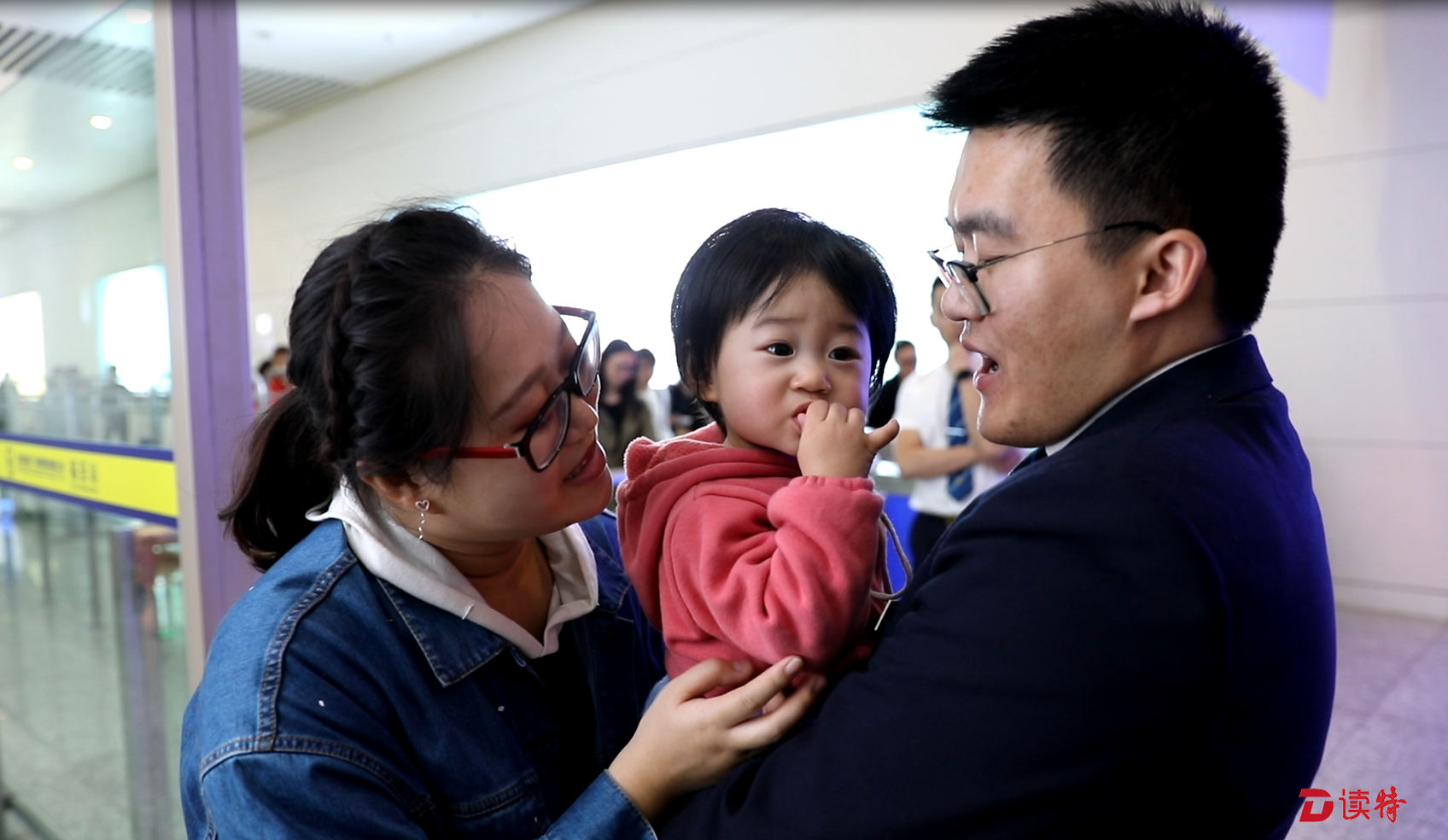中午12點(diǎn),終于到了下班交接的時候,這也是李樹森最期待的一刻。他的妻子張焱茹也是福田高鐵站的客運(yùn)員,兩口子在同一個站里值“對班”,他下班的時候,正是妻子上班的時候,因此,只有在交班時,他們才能見上一面。而且,他們還要做一件很重要的事,那就是交接孩子。女兒“丸子”今年剛滿一歲,張焱茹把孩子從家里帶來,交給下班的李樹森輪流照顧。