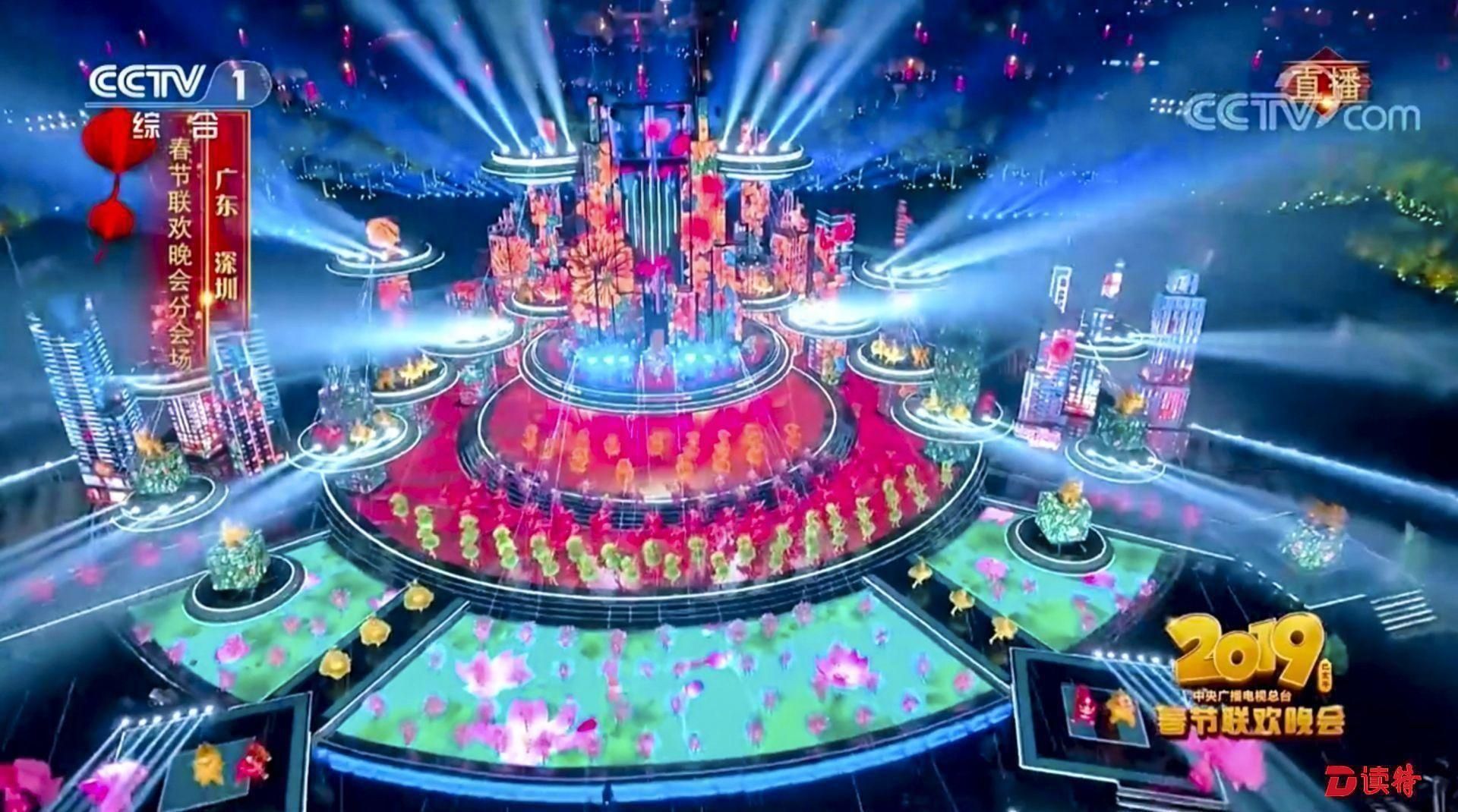 除夕夜,深圳市中心區(qū)燈光璀璨。2019央視春晚深圳分會場——深圳市民中心廣場上演精彩“深圳七分鐘”。