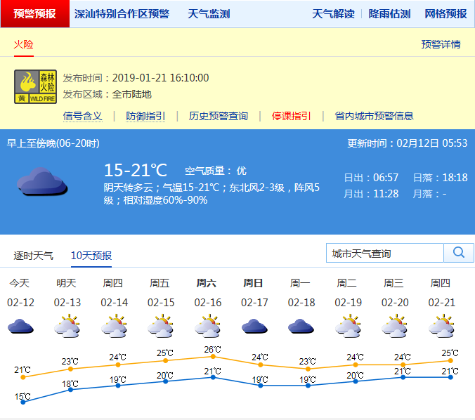 記者從深圳市氣象局了解到,昨日受冷空氣影響,早晨最低氣溫在14-16℃,較春節(jié)假期明顯變涼,因?yàn)樵屏枯^多,白天氣溫在17℃左右徘徊;預(yù)計(jì)12日起冷空氣逐漸減弱,氣溫逐日上升,早晚能見度逐漸轉(zhuǎn)差,氣溫在15-21℃;15-16日多云間晴天,早晚有輕霧或霧,中午前后較熱;17-18日弱冷空氣影響,有分散小雨,氣溫下降,沿海和高地陣風(fēng)7-8級。