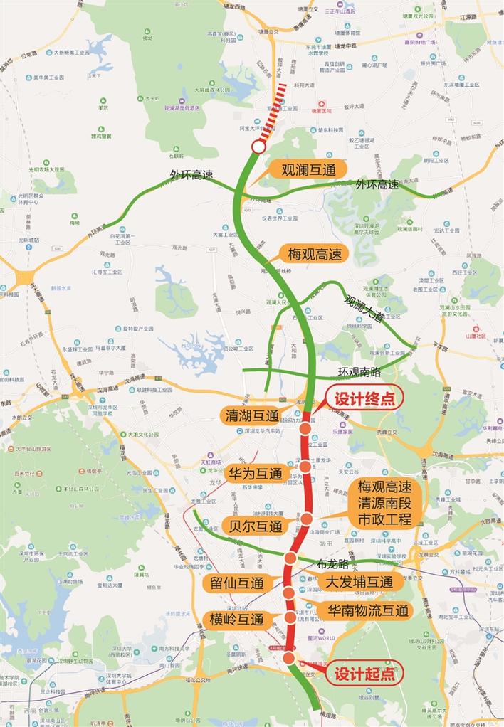 晶報(bào)2019年02月13日訊 深圳中軸線又多一條“深南大道”!昨日,晶報(bào)記者從市交通運(yùn)輸局建設(shè)中心獲悉,備受關(guān)注的梅觀高速清湖南段市政道路工程有望于今年第二季度啟動。該工程竣工后,梅觀高速清湖南段主路將變成雙向8車道,將大大改善道路通行狀況,對沿線龍華區(qū)及龍崗區(qū)的經(jīng)濟(jì)發(fā)展和社會建設(shè)也將帶來巨大的推動作用。