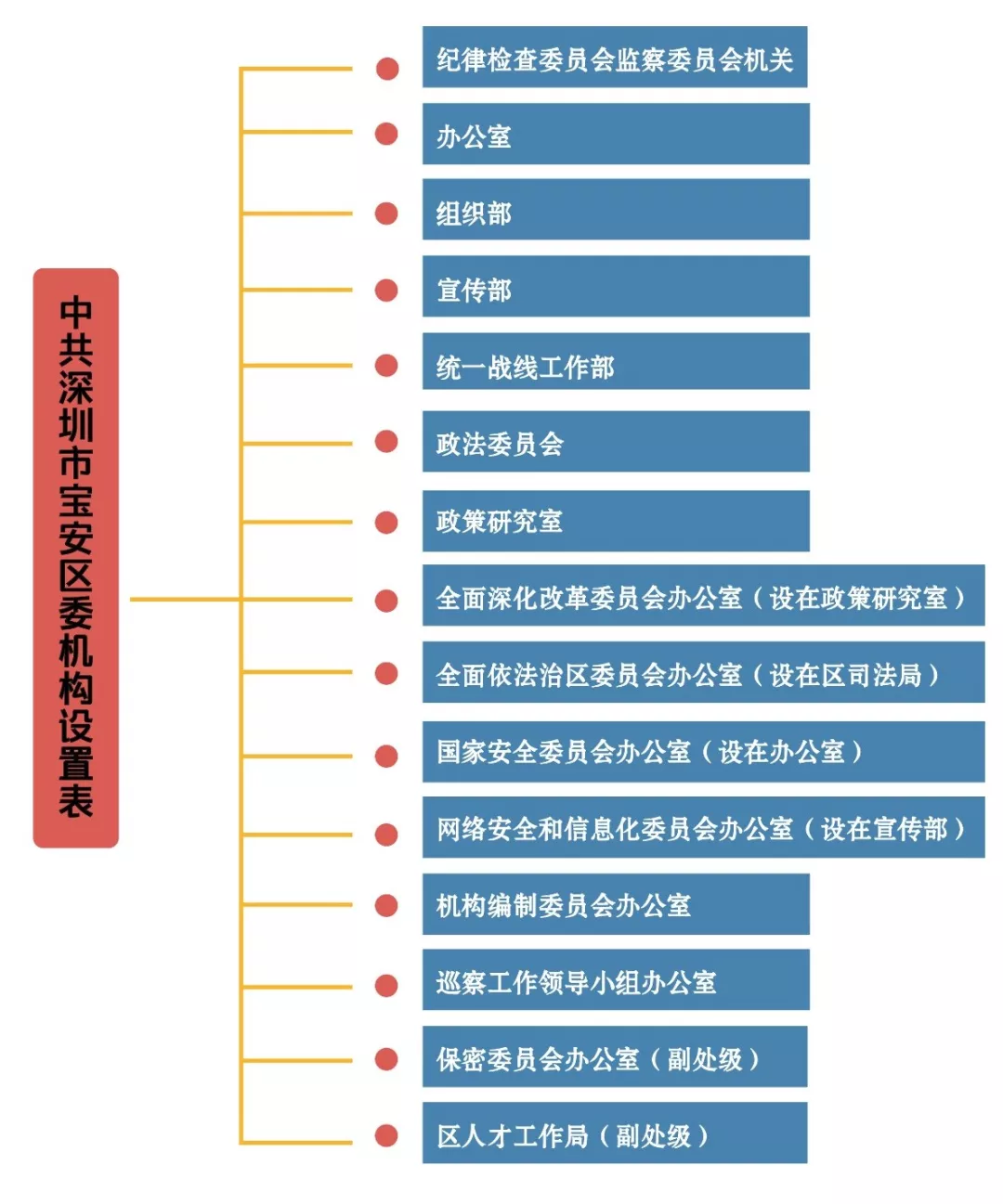 說明:深圳市寶安區(qū)委設(shè)置紀檢監(jiān)察機關(guān)1個,計入機構(gòu)限額的工作機關(guān)10個(設(shè)在相關(guān)部門的區(qū)委議事協(xié)調(diào)機構(gòu)的辦事機構(gòu)不計入機構(gòu)限額)。其中,紀律檢查委員會與監(jiān)察委員會合署辦公,實行一套工作機構(gòu)、兩個機關(guān)名稱;辦公室掛區(qū)外事局、區(qū)檔案局牌子;組織部掛區(qū)直屬機關(guān)工作委員會、區(qū)非公有制經(jīng)濟組織和社會組織工作委員會、區(qū)公務員局牌子;宣傳部掛區(qū)精神文明建設(shè)委員會辦公室、區(qū)新聞出版局、區(qū)互聯(lián)網(wǎng)信息辦公室牌子;統(tǒng)一戰(zhàn)線工作部掛區(qū)民族宗教事務局、區(qū)臺港澳事務局、區(qū)僑務局牌子;保密委員會辦公室掛機要局、區(qū)國家保密局、區(qū)密碼管理局牌子。