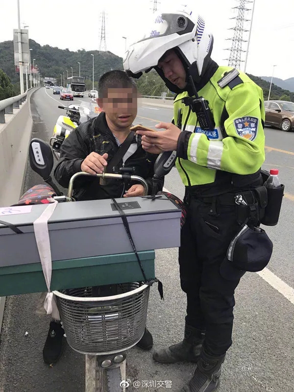 2月14日上午,深圳交警巡邏至南坪快速長嶺陂大橋時發(fā)現(xiàn)一輛非機動車上快速路。上前詢問后得知,男子是幫客戶送禮物的,不料卻迷路了,這才誤闖了快速路。蜀黍?qū)ζ浣逃?,迅速將?dāng)事人護送下快速路路口。