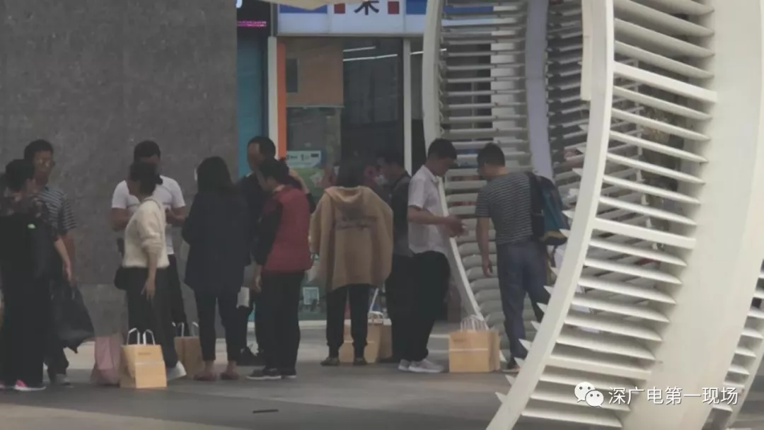 今天中午,記者來到了深圳南山區(qū)海岸城,走到廣場上,遠遠就看到一條長長的隊伍排在一家名為“鮑師傅”的糕點店門前。在隊伍的末尾,幾名男子提著鮑師傅的袋子,不斷向過往的市民兜售。