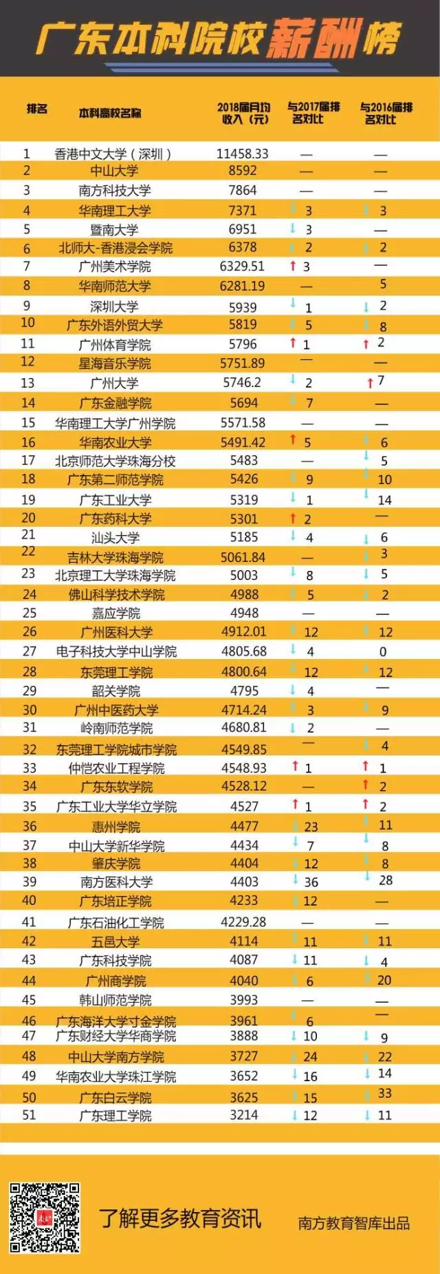 不久前,省教育廳發(fā)布了《2018年高校畢業(yè)生就業(yè)質(zhì)量年度報告》,全省本科畢業(yè)生平均月薪為4522元。已公布相關(guān)數(shù)據(jù)的51所本科高校中,有35所超過了全省本科畢業(yè)生的平均月薪,其中中山大學8592元、南方科技大學7864元、華南理工大學7371元名列前3位,均超過7000元。