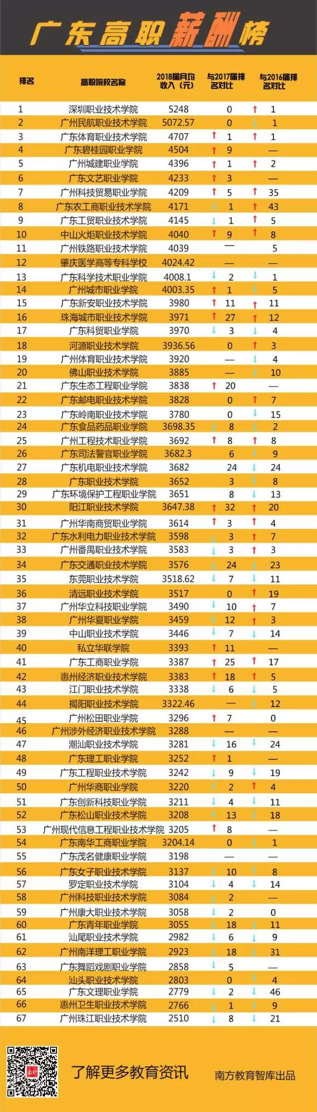▲廣東高職薪酬10強,深職院、廣州民航平均月薪超5000元,超過不少本科院校。