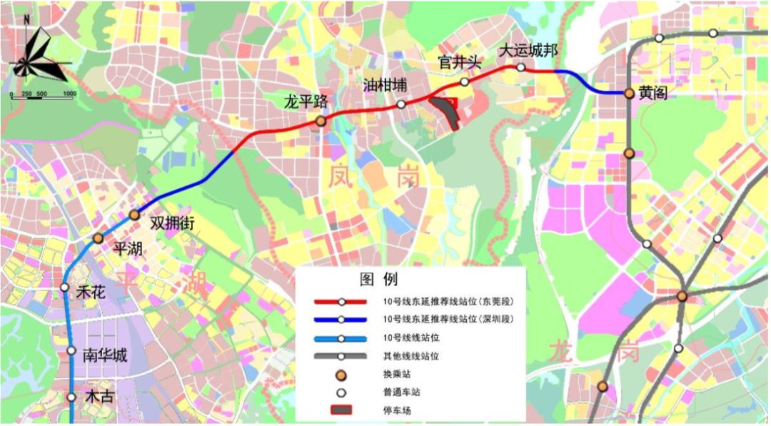 10號(hào)線東延是聯(lián)系平湖、東莞鳳崗及大運(yùn)新城的普速線路,主要功能為加強(qiáng)龍崗中心城與平湖、坂雪崗的聯(lián)系、促進(jìn)深莞一體化。東延線路由在建地鐵10號(hào)線雙擁街站后引出,出站后轉(zhuǎn)向東北方向,下穿鳳凰山國(guó)家礦山公園,之后進(jìn)入東莞,東莞段內(nèi)沿龍平路敷設(shè),在東北師大益田小學(xué)北側(cè)向東南下穿武深高速、鹽龍大道進(jìn)入清林路,接至在建16號(hào)線黃閣站。線路全長(zhǎng)約9.8km,設(shè)站5座,采用地下敷設(shè)方式。