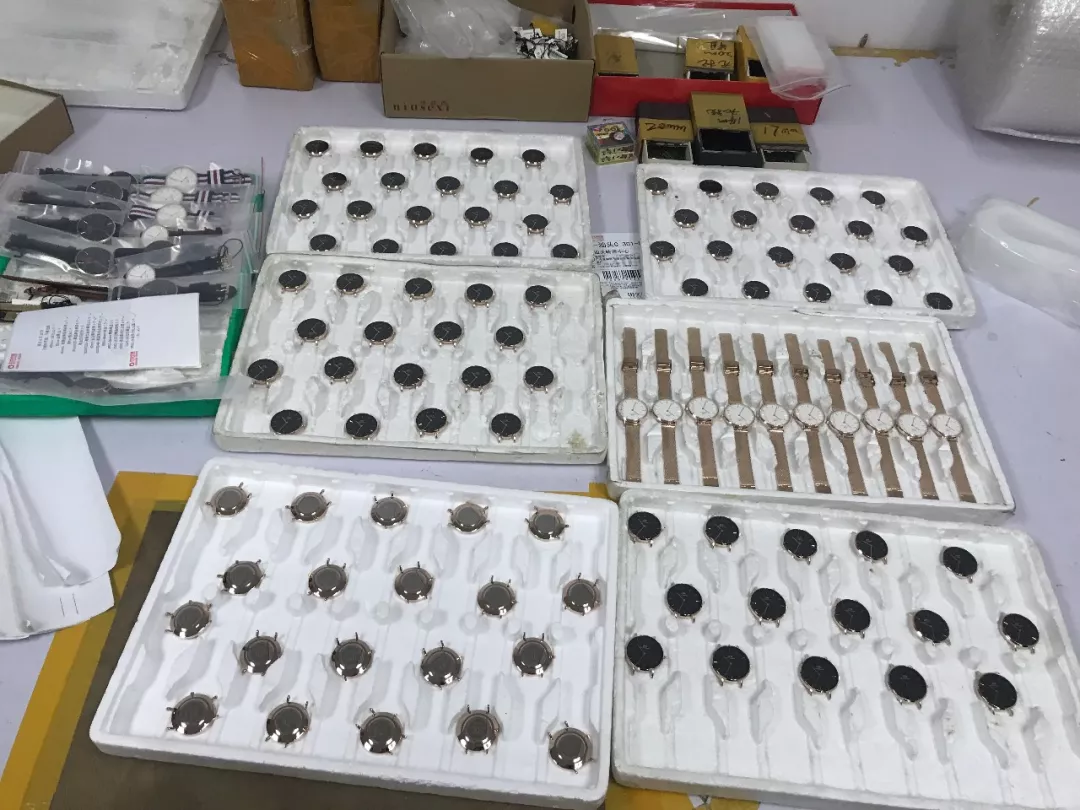 2018年6月21日,深圳市公安局經(jīng)偵支隊聯(lián)合市市場監(jiān)管部門開展打擊假冒DW品牌手表、FOREO等品牌潔面儀收網(wǎng)行動,共出動警力110人,查處窩點(diǎn)13個,刑拘犯罪嫌疑人12人?,F(xiàn)場查扣假冒DW品牌手表13500塊,表帶、表殼、后蓋等配件43000個以及包裝盒、標(biāo)簽12000余個,現(xiàn)場查扣假冒產(chǎn)品價值1200萬元人民幣,總涉案金額3000余萬元人民幣。查扣假冒各品牌美容產(chǎn)品、半成品和商標(biāo)標(biāo)識11798件,查扣假冒產(chǎn)品價值人民幣500萬元。經(jīng)查,上述犯罪團(tuán)伙在未經(jīng)注冊商標(biāo)所有人許可的情況下,擅自使用注冊的商標(biāo)圖案組裝、翻新假冒DW品牌手表、FOREO品牌潔面儀。經(jīng)商標(biāo)權(quán)利人鑒定,現(xiàn)場查獲的手表和美容儀為假冒其注冊商標(biāo)的產(chǎn)品。