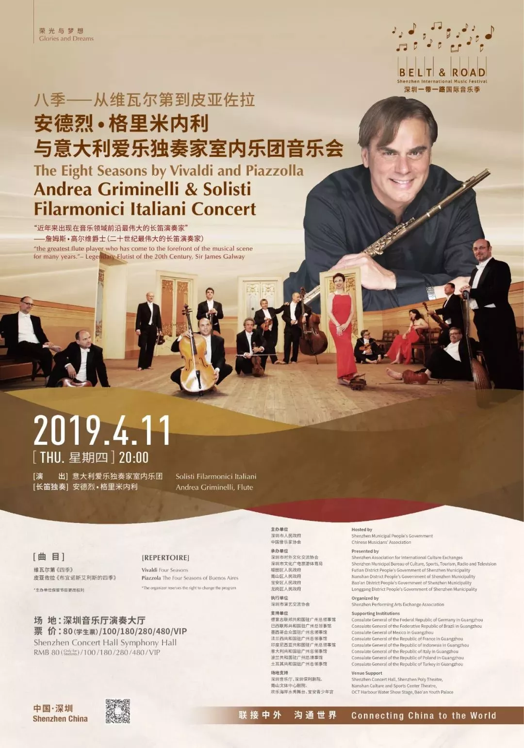長笛名家安德烈 格里米內(nèi)利,世界三大男高音之一帕瓦羅蒂推崇的長笛大師,攜意大利愛樂獨奏家室內(nèi)樂團,首次到訪深圳,用音樂鏈接跨越時空的《四季》。