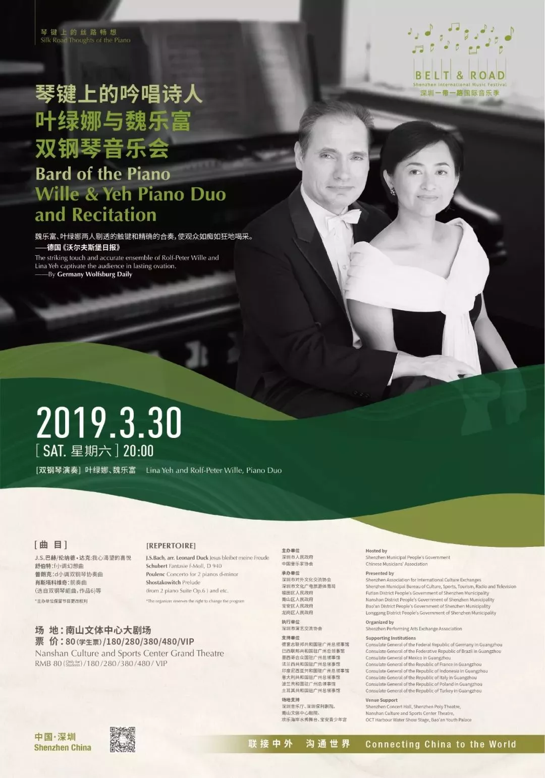 魏樂富與葉綠娜,來自中國臺灣的音樂伉儷,兩人的合作從音樂到文學,精彩演奏與深情吟誦展露出琴鍵上的吟唱詩人氣質(zhì)。