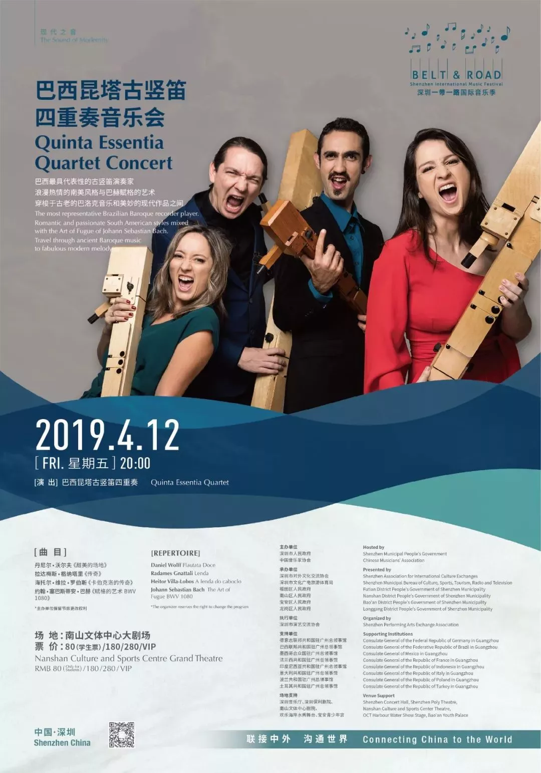 來自巴西的昆塔古豎笛四重奏,專程獻上一場融浪漫熱情的南美現(xiàn)代風格、巴西民族風與巴洛克相結(jié)合的精彩演出。