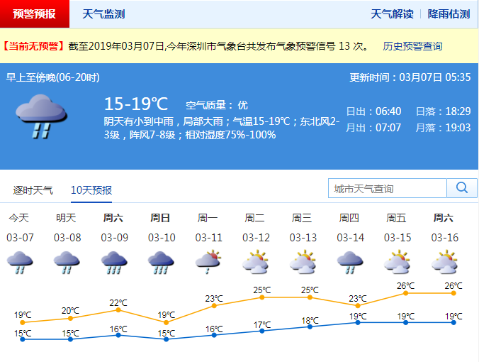 今日全市陰天有分散陣雨,氣溫15-17℃。市氣象局預(yù)計,8日陰天有中到大雨,部分時間雨勢較大;9-10日陰天有大雨,局部暴雨,間中有雷暴和短時大風(fēng);11日陣雨轉(zhuǎn)多云;12-13日多云間晴