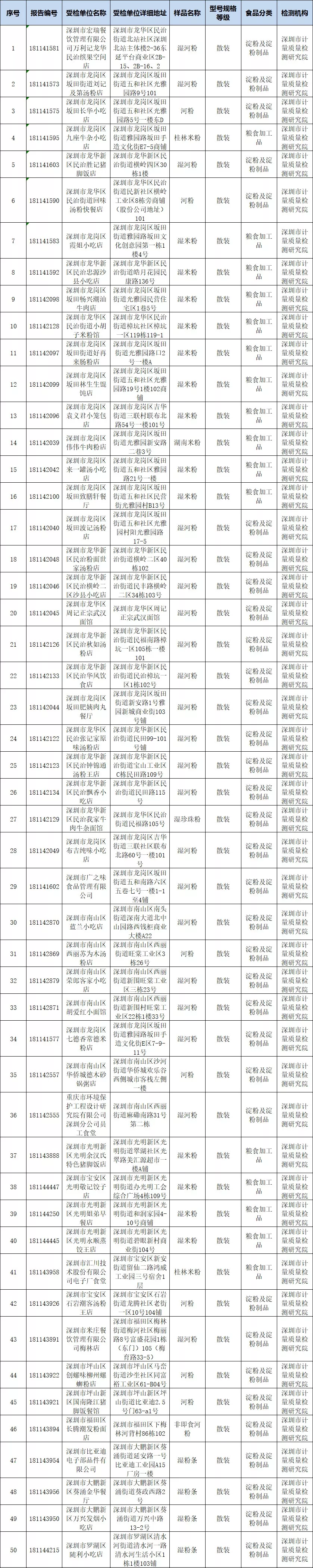 近期公布的食品抽檢結果中