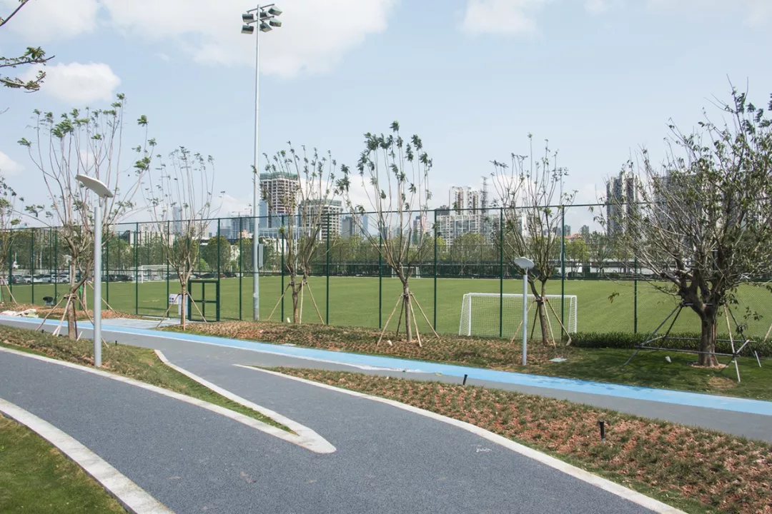 此外,公園內(nèi)還有環(huán)形跑道及游園休閑步道等運(yùn)動設(shè)施,環(huán)形跑道總長1400米,向市民開放。
