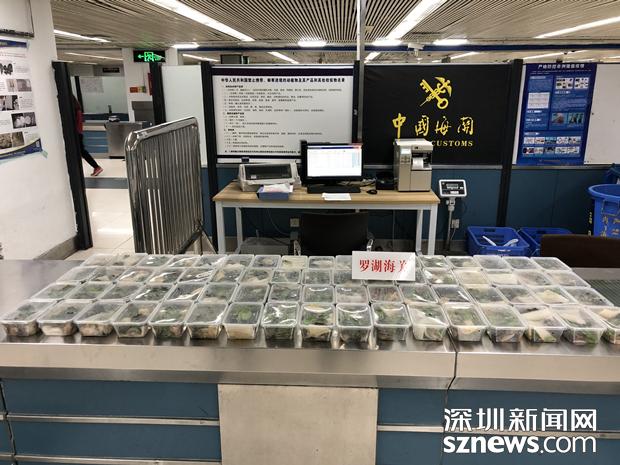 3月21日晚,兩名男性旅客各自提著兩個外形相似的大行李袋及一副魚竿,從羅湖口岸入境。在對其行李進行X光機檢查時,海關(guān)關(guān)員在機檢圖像中發(fā)現(xiàn)了異常,圖像顯示四個袋子中的物品呈現(xiàn)生物特征,而且有若干個相同的容器包裝著,于是海關(guān)關(guān)員要求兩名旅客打開行李袋進行詳細檢查。