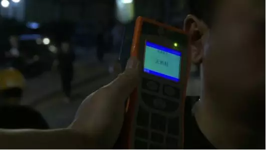 隨后,多名交警趕到了現(xiàn)場,對黑衣男子進行酒精測試,測試結(jié)果顯示為零!
