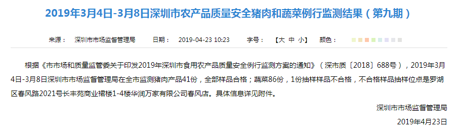 注意!新的一期菜肉抽檢結(jié)果出來了!