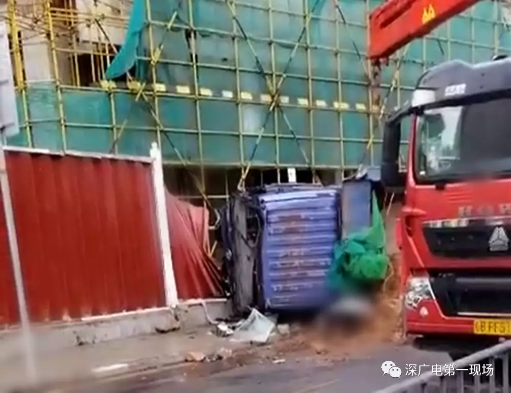 深廣電第一現(xiàn)場2019年5月5日訊 4日下午5點(diǎn)左右有觀眾在粉絲群爆料稱在深圳羅湖金湖路上從觀眾提供的現(xiàn)場視頻可以看到這輛渣土車的車頭已經(jīng)嚴(yán)重變形。