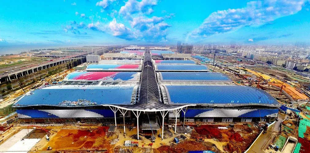 據(jù)了解,深圳國際會(huì)展中心整個(gè)登錄大廳區(qū)域網(wǎng)殼連同屋面龍骨由12155根構(gòu)件組成,下部由96根巨型分叉柱支撐,網(wǎng)殼的焊接作業(yè)所用的焊絲長度達(dá)到2400公里,相當(dāng)于北京到深圳的距離。