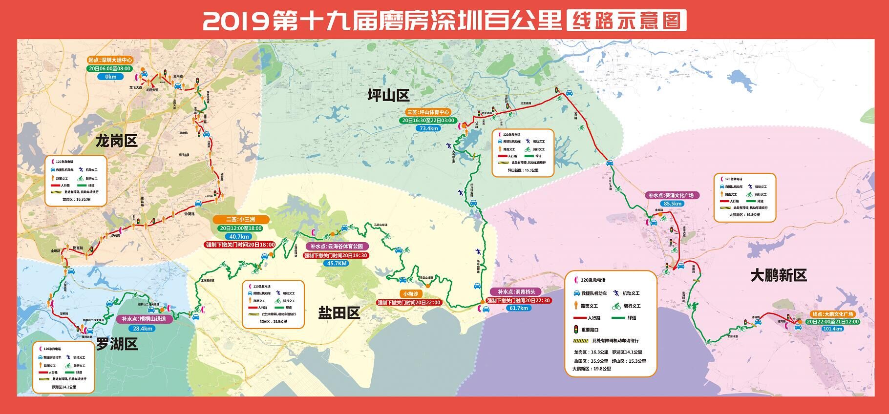 本屆百公里活動(dòng)路線和補(bǔ)給點(diǎn)分布圖
