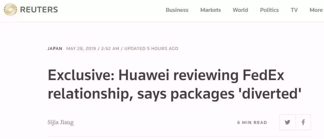 路透社28日報(bào)道,華為表示目前正在審查與美國聯(lián)邦快遞公司的合作關(guān)系。