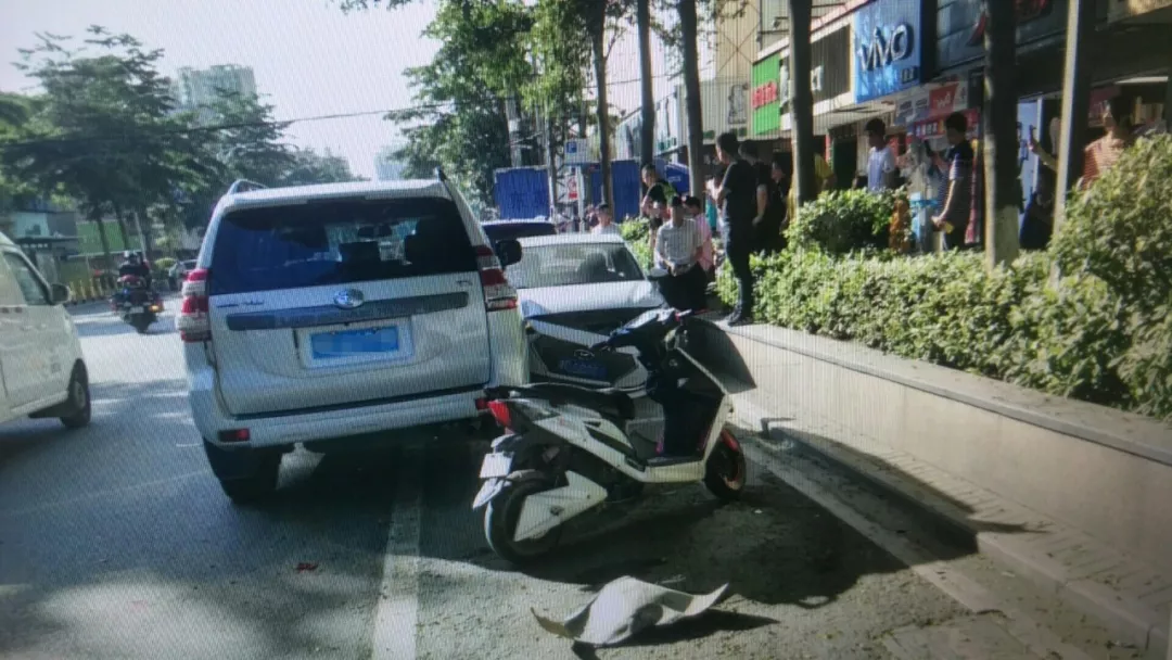 直到15時(shí)30分左右,郭某亮駕駛粵B****P號(hào)牌機(jī)動(dòng)車(chē)準(zhǔn)備回沙井,其從羅湖筍崗走北環(huán)大道轉(zhuǎn)107國(guó)道,到了沙井走南環(huán)路轉(zhuǎn)東環(huán)路,行駛至沙井上南大街某購(gòu)物廣場(chǎng)時(shí)追尾了一輛粵S****9號(hào)牌面包車(chē),方向盤(pán)失控后又撞到了停在路邊的兩輛小轎車(chē)。