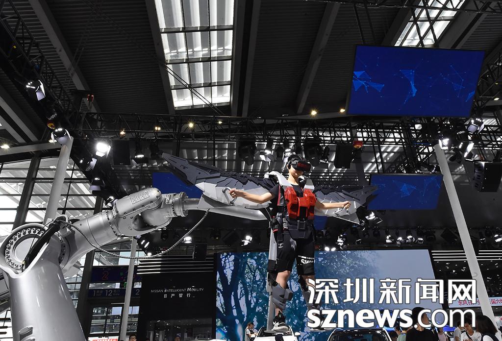 市民通過(guò)機(jī)器臂體驗(yàn)“飛翔”的感覺(jué)