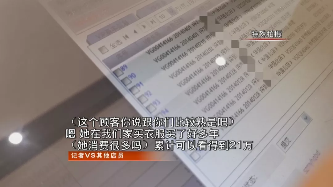 記者來(lái)到李小姐所在的女裝專柜了解情況。這個(gè)牌子衣服的標(biāo)價(jià),目前夏裝單價(jià)在2000-5000元,李小姐說秋冬裝單件4000-7000元左右,屬于高端服裝品牌,當(dāng)時(shí)店里的一位熟客顏女士,選了11件秋冬裝,總價(jià)4萬(wàn)3千多元。