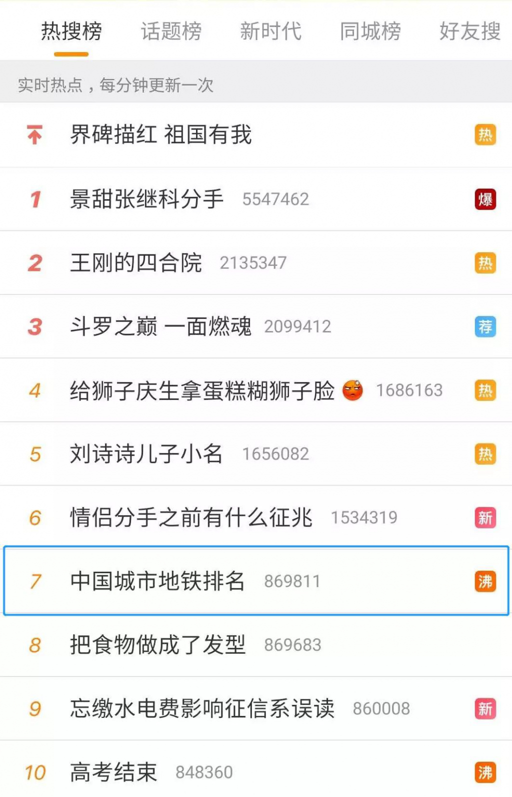 城市地鐵排名上熱搜了!深圳:讓排名飛一會兒