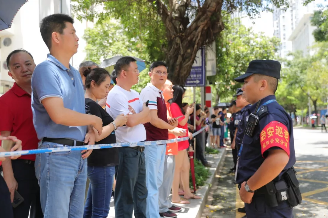 考試開始和結(jié)束時,在深圳實(shí)驗(yàn)學(xué)校中學(xué)部的考場外,家長們自發(fā)組織的義工服務(wù)隊(duì)也正在有序地維護(hù)著考場外的秩序。通心嶺派出所積極與本次家長義工服務(wù)隊(duì)的成員溝通,在考試結(jié)束后散場時能夠快速緩解人流,保證考場周邊的秩序。
