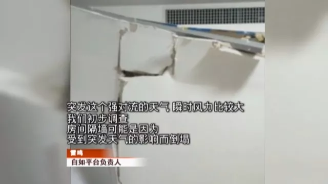 而對于這次隔斷墻的突然倒塌,負責人表示,出現(xiàn)問題是個例,可能和昨天的強風暴雨天氣有關。