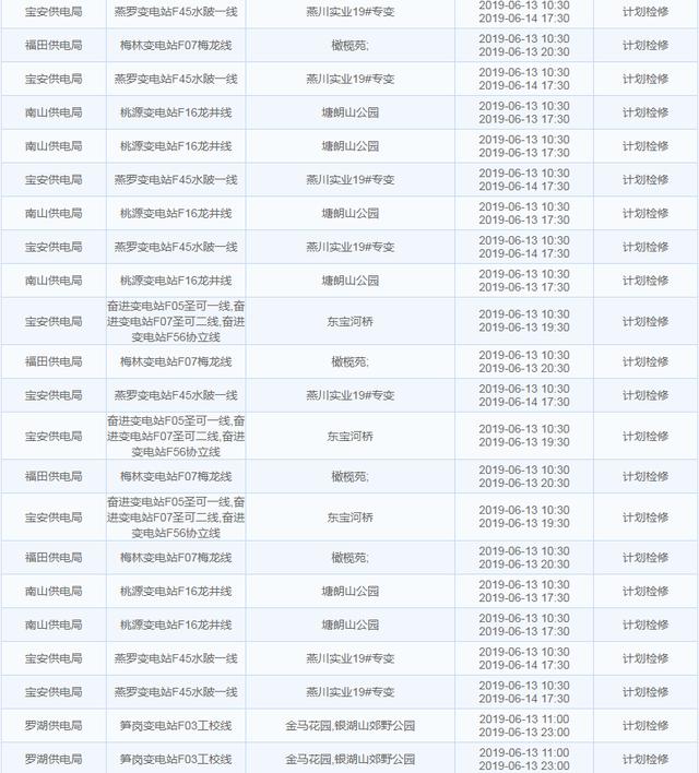 這個(gè)星期,深圳都有哪些地方計(jì)劃停電呢?南方電網(wǎng)發(fā)布深圳停電計(jì)劃。