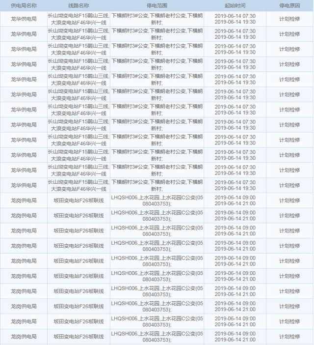 【6月14日停電計(jì)劃】