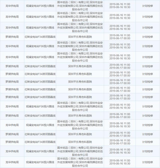 南方電網(wǎng)發(fā)布6月13日至6月16日深圳停電計(jì)劃 涉及多個區(qū)